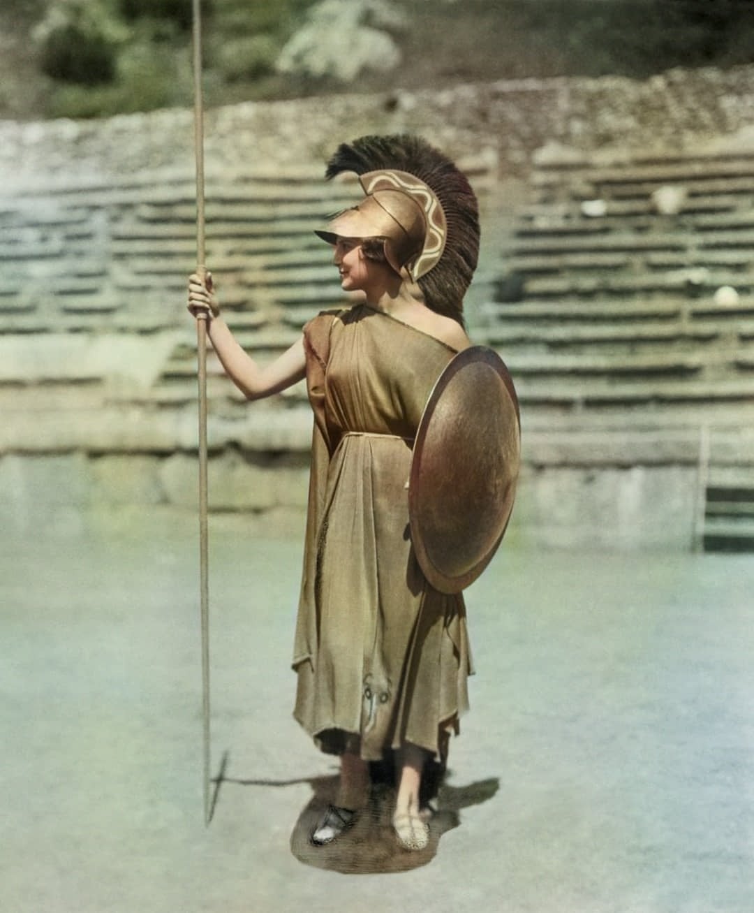 Greek model Aliki Diplarakou, who previously won the title of Miss Hellas and Miss Europe 1930, as Athena Promachos at the Second Delphic Festival in Delphi, 1930. [1080×1307]