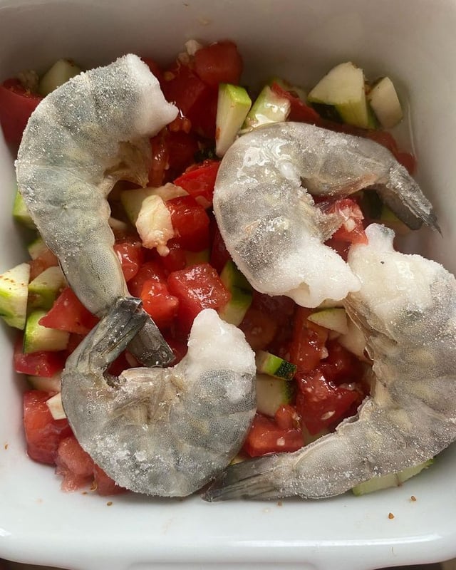 Zucchini und Garnelen mit zusätzlichen Tomaten und Käse!