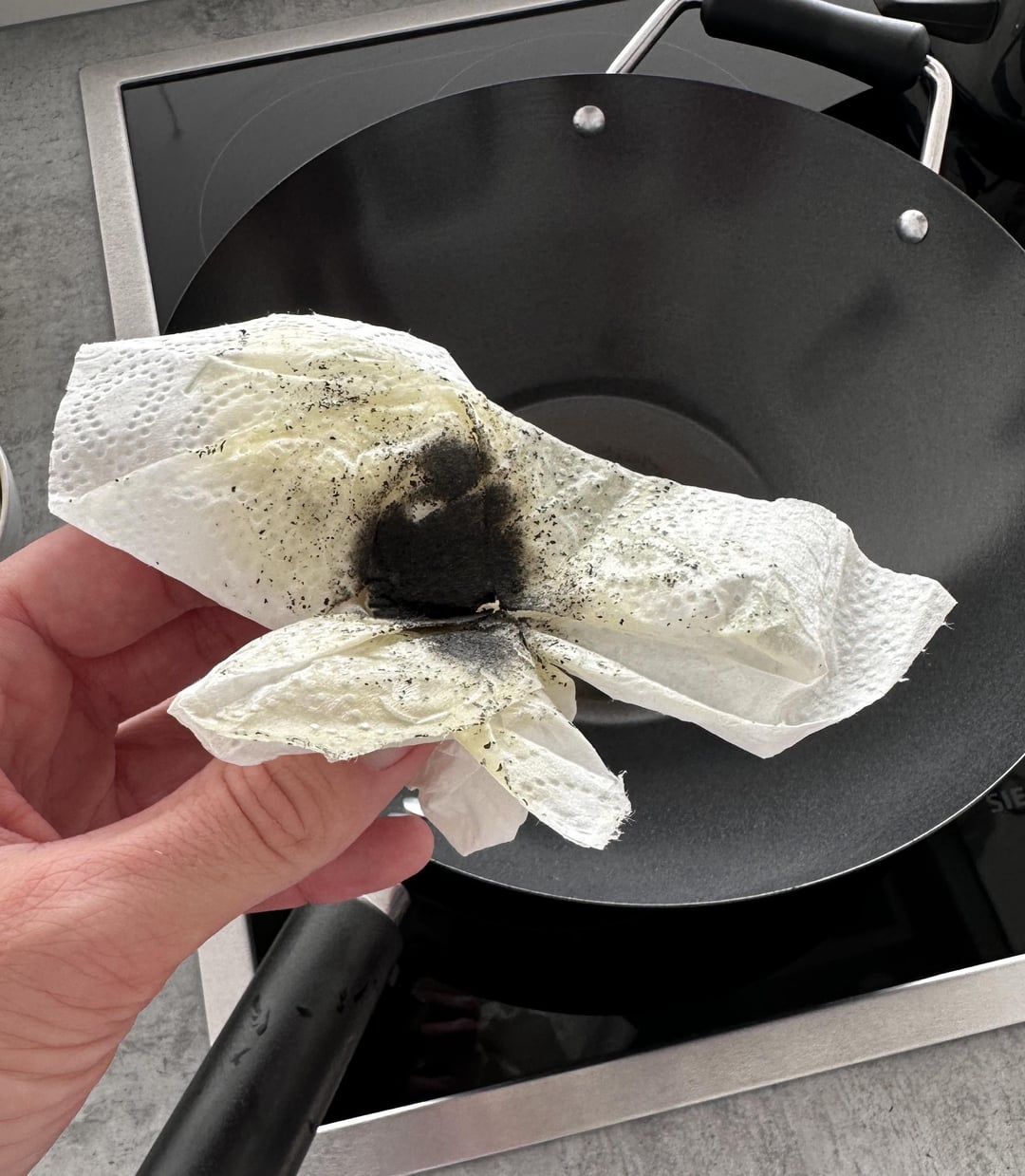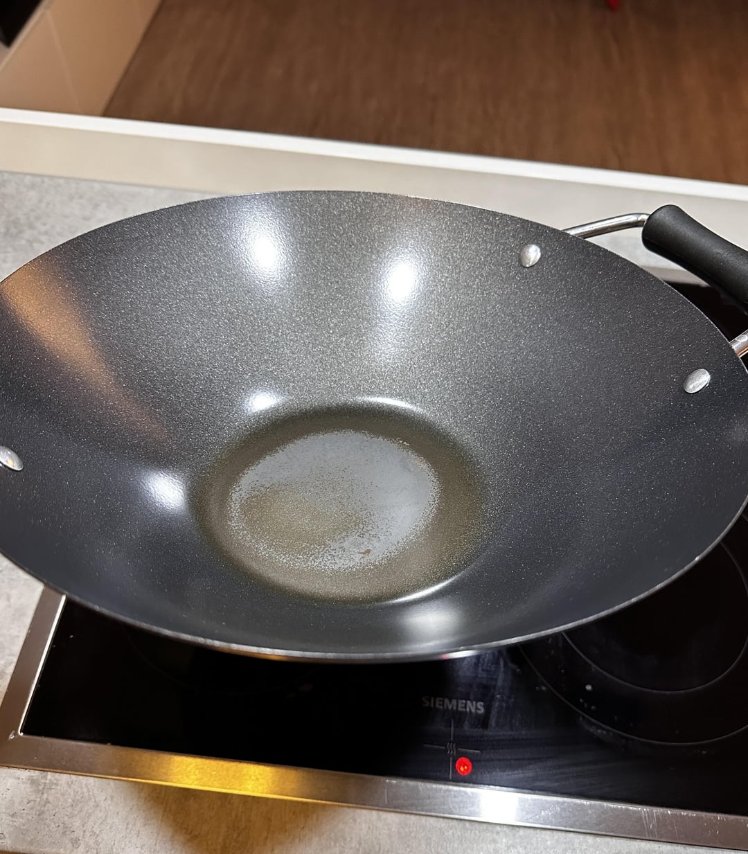 Ich habe eine neue Wok Pfanne und wollte sie wie gewohnt einmal vor dem ersten Gebrauch ordentlich durchheizen damit sie „abdampft“.