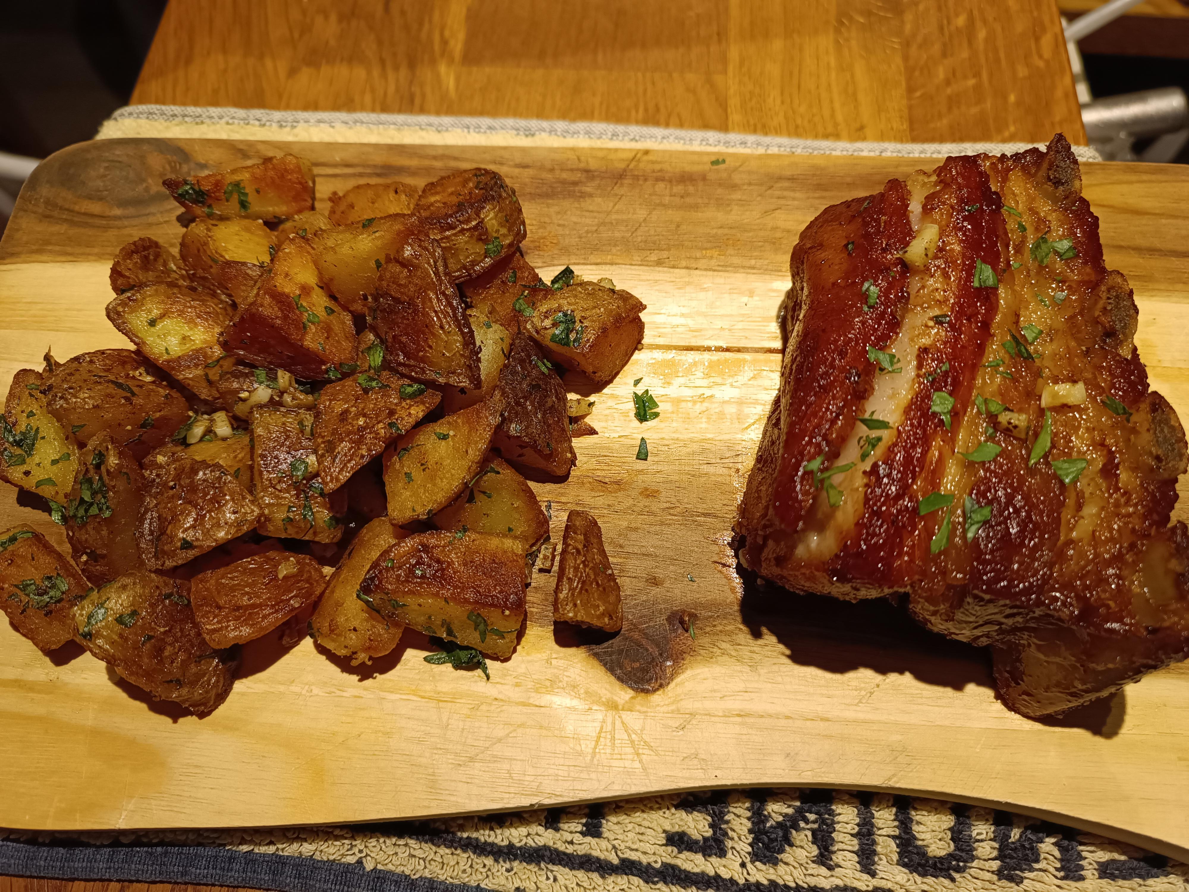 Travers confit – Pomme de terre sautées ail & persil