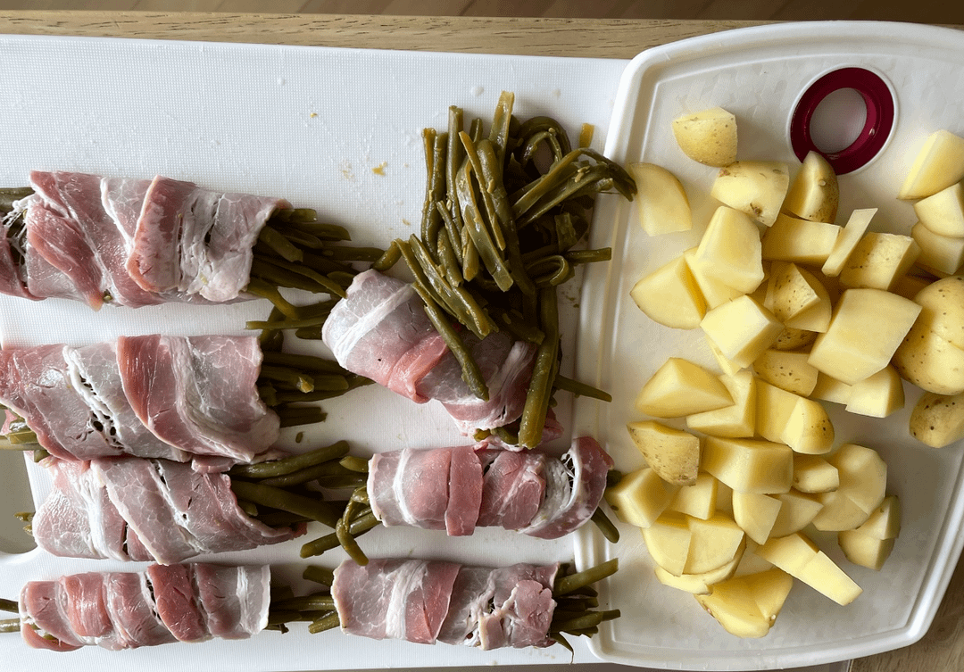 wir hatten noch ein abgelaufenes glas bohnen, hat erstaunlich gut im air fryer (wie ich den namen hasse) funktioniert: