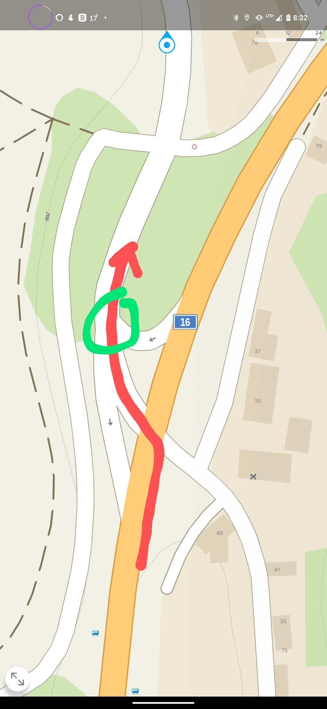 Když pojedu po hlavní (červená) a sjedu ve směru šipky, jak je to s přesností v zprava v zeleném bodě (sjezd z protisměru hlavní po které jsem jel). Zažil jsem zde zajímavou situaci tak se chci poradit. Děkuji za Váš na názor.