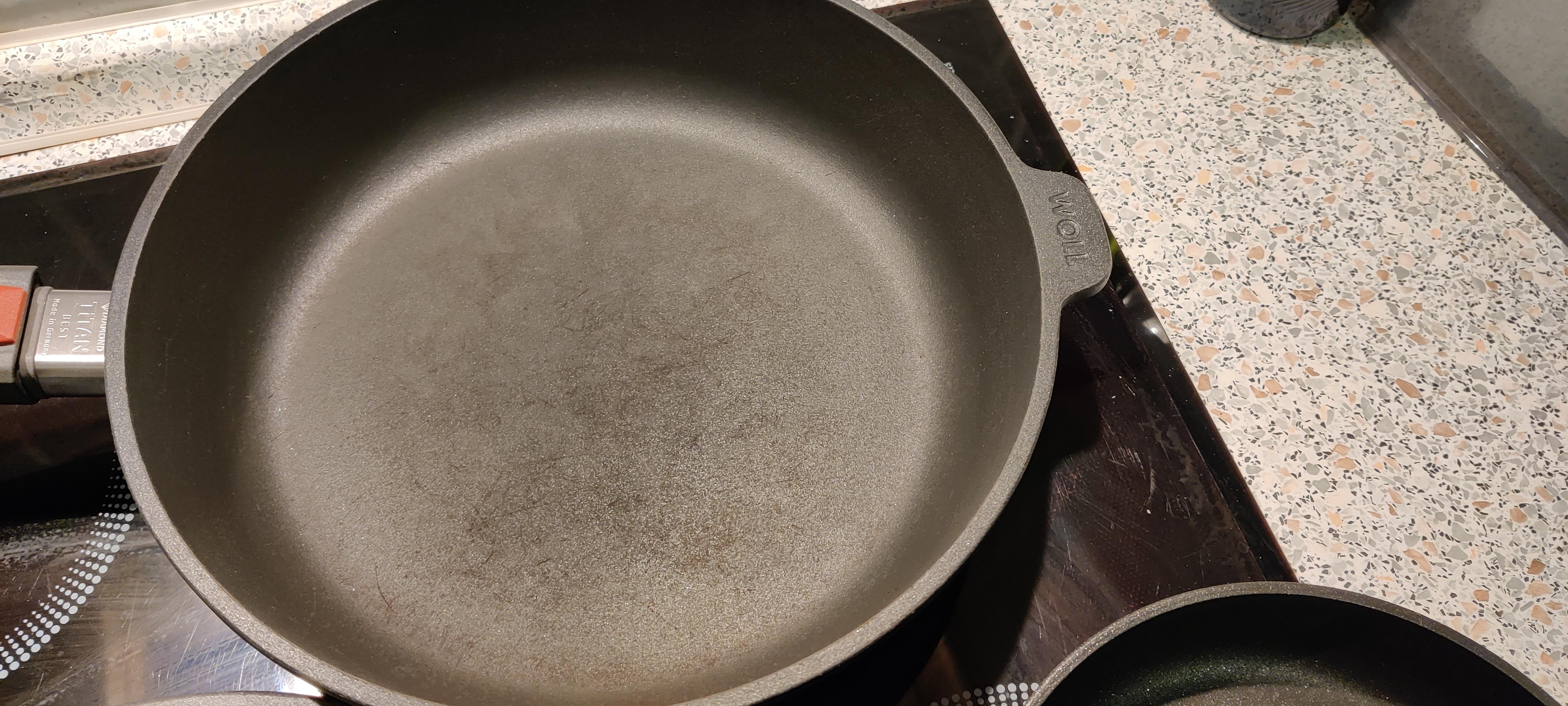 Ist eine WOLL Titan Best Pfanne. Ist hier schon die Beschichtung kaputt oder handelt es sich lediglich um Schmutz?