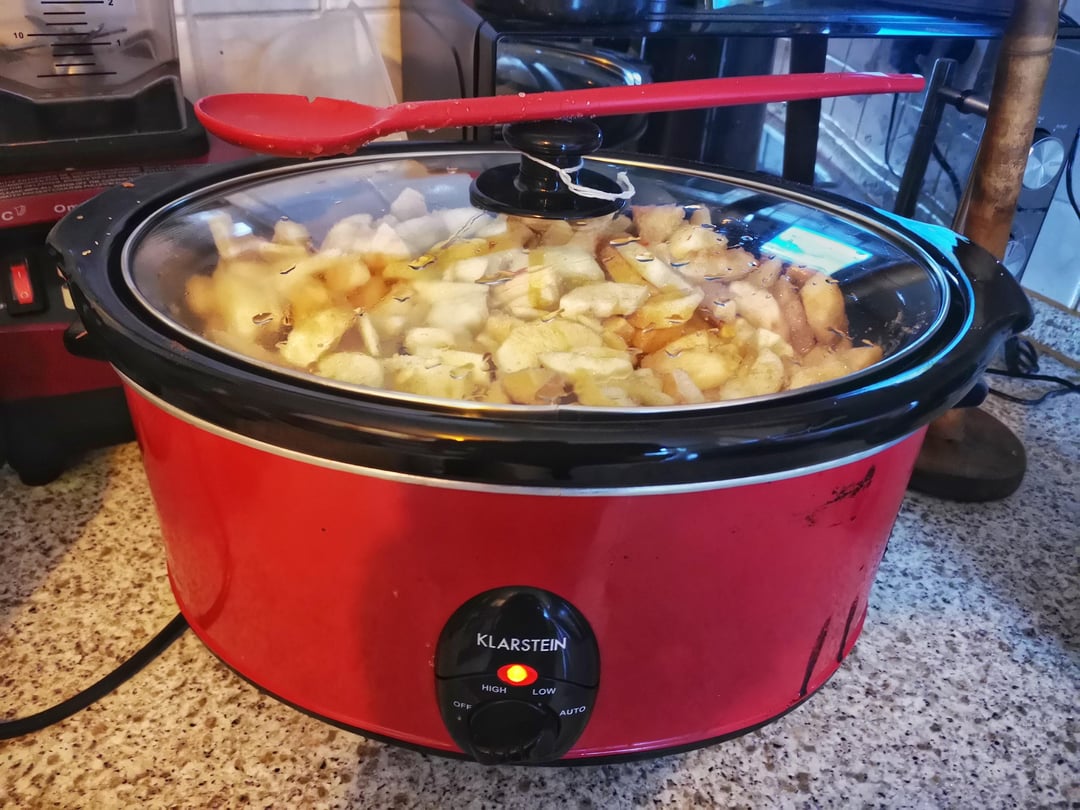 – Apfelspalten – der SlowCooker hat ein Volumen von 6,5 Liter (vgl. Foto)