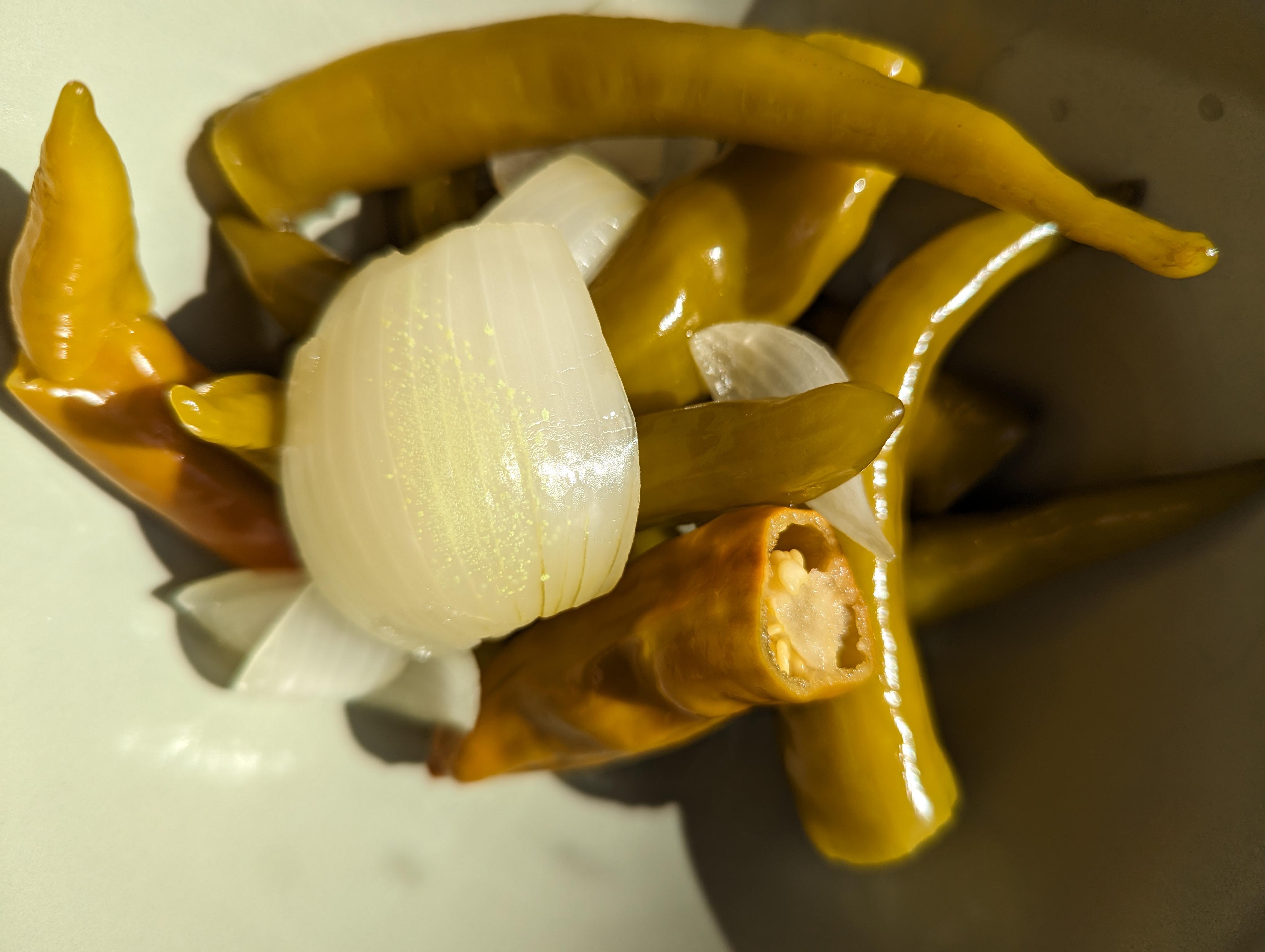 Wir haben hier eingelegtes Gemüse. Auf den Zwiebeln haben sich so neongelbe Fleckchen gebildet. Kann das Schimmel sein? Wenn nicht, was ist das?