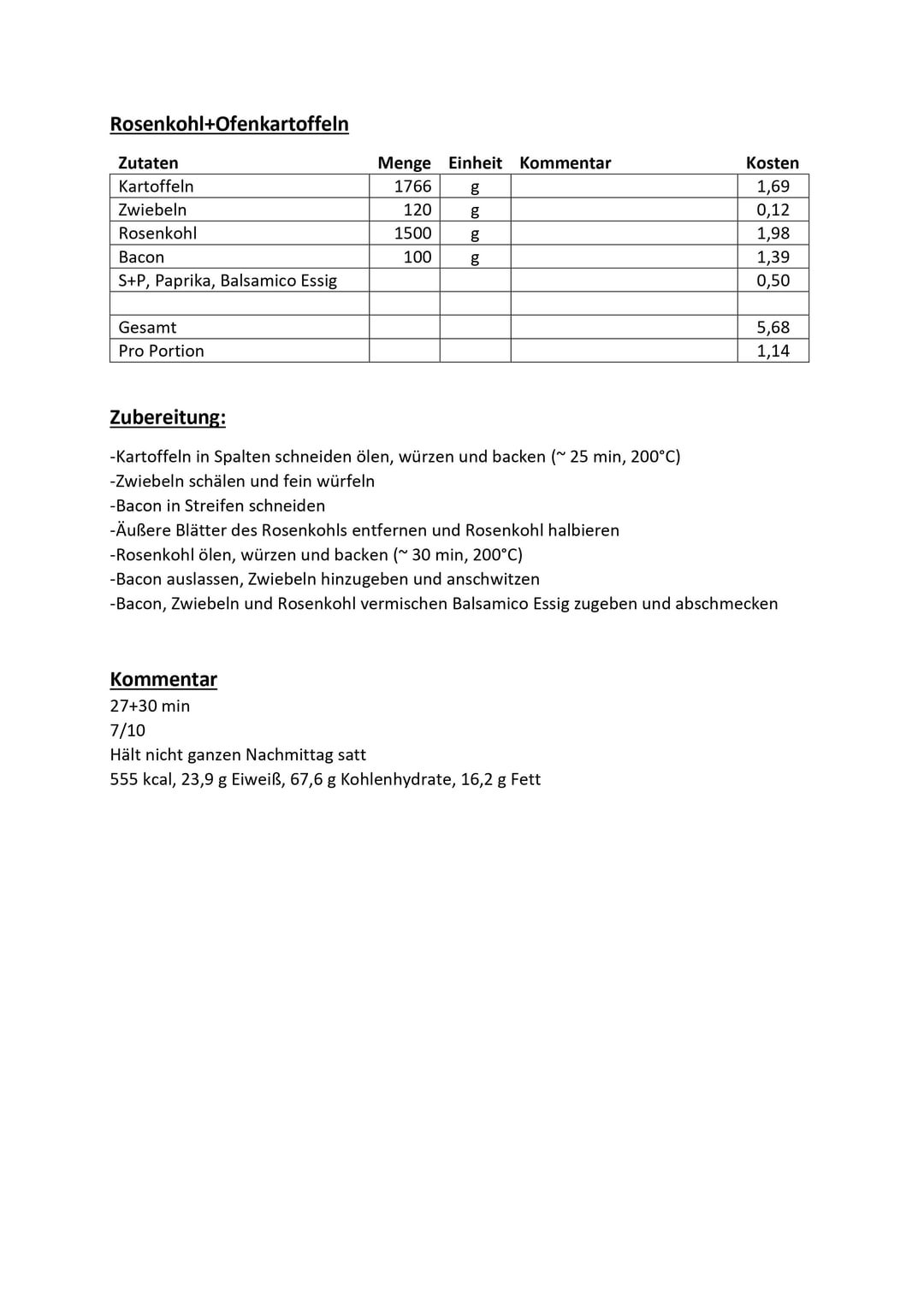 Salz, Pfeffer, Paprika und Balsamico hast du in der Auflistung, das Öl für die Kartoffeln und den Rosenkohl nicht, hast du das einfach übersehen, oder ist das mit Absicht? Ich mein 2 El Öl sind ja schon 150+/- Kalorien.