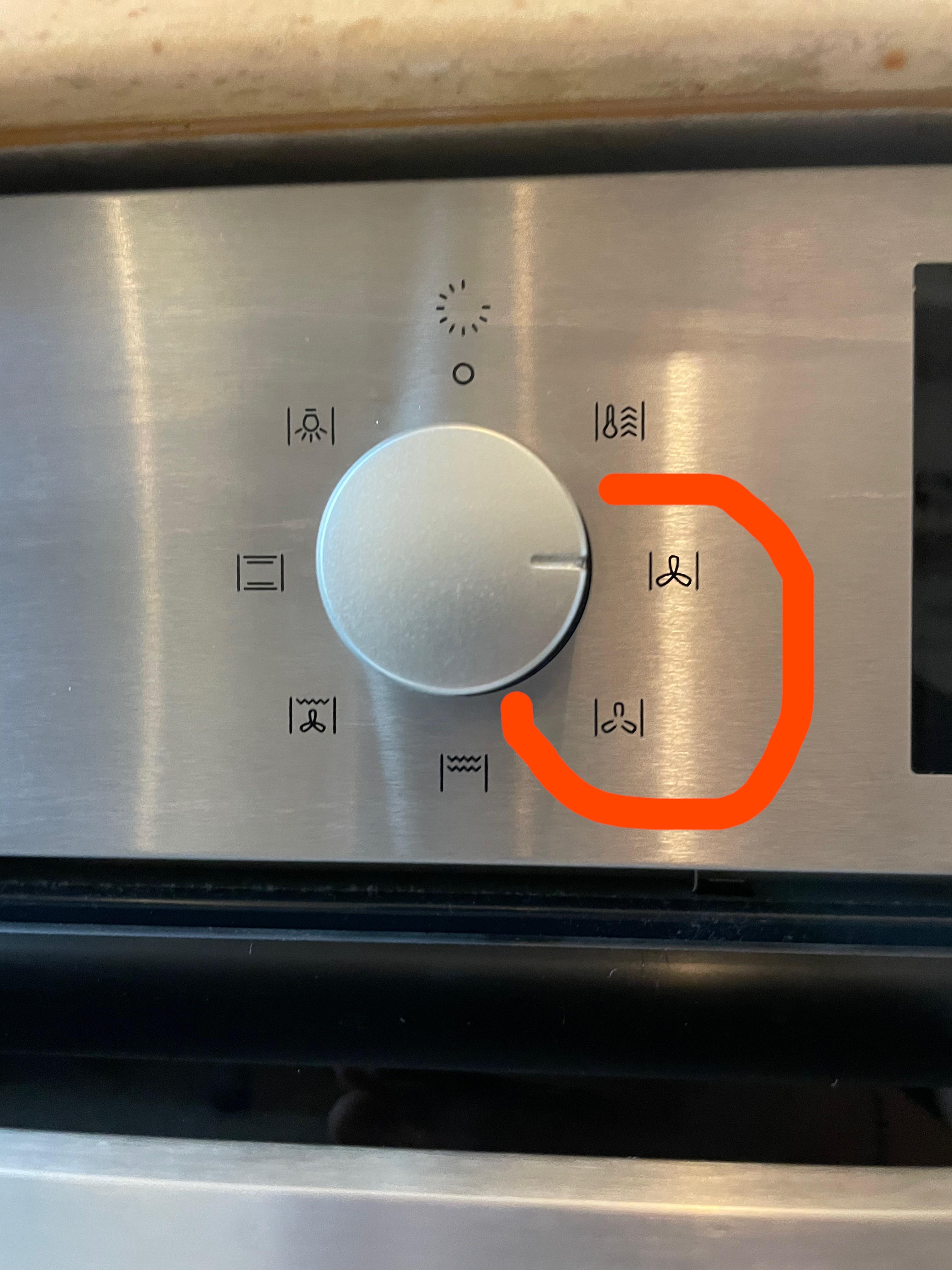 Das obere ist die normale Umluft in stark (nicht ganz Heissluftfritöse, aber mehr als normal), unten Umluft in sanft (damit das Gargut nicht so schnell anbrennt).