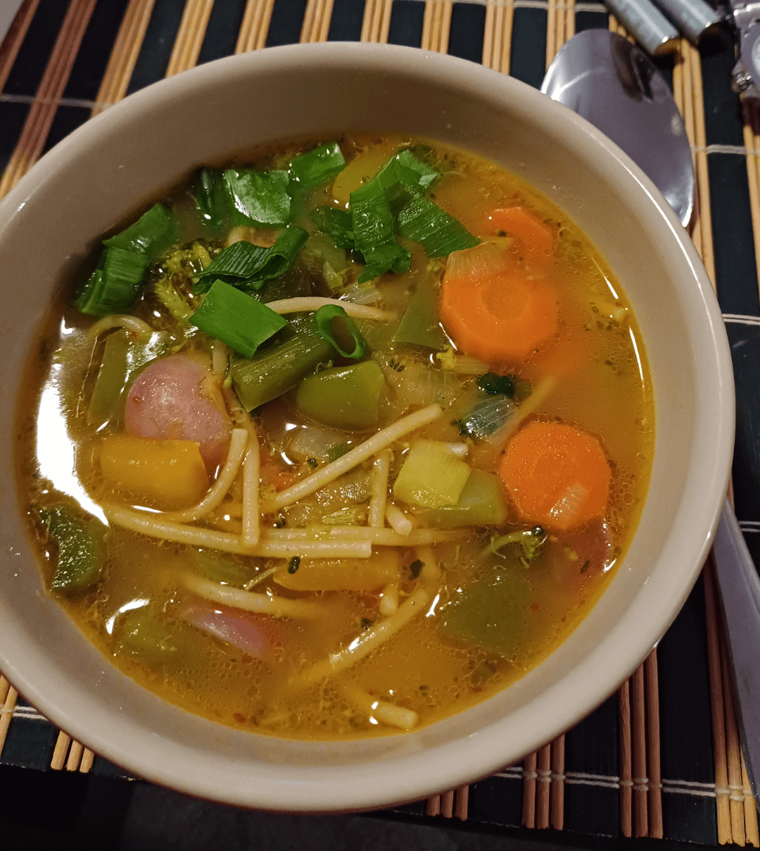 Ansonsten kann man nach belieben würzen und alles mögliche reinpacken was übrig ist und weg muss.