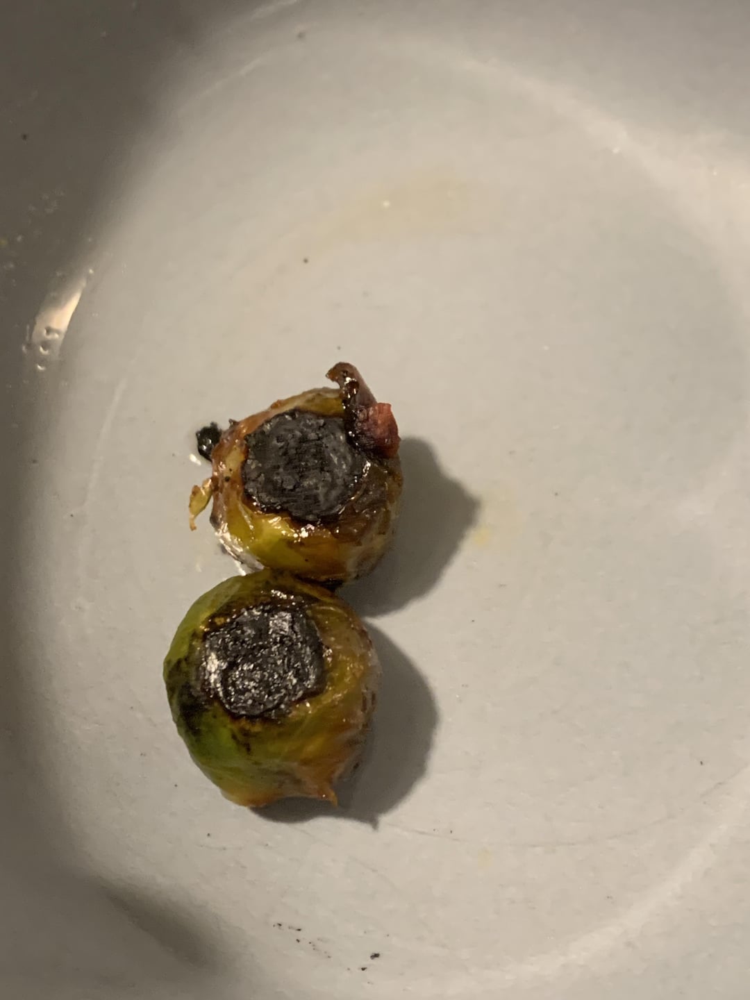 Meine Freundin und ich haben Rosenkohl gekocht und in Sauce geschwenkt, welchen wir als Mitternachtssnack gerade in der Mikrowelle erneut wärmen wollten. Dabei haben plötzlich zwei Röschen angefangen funken zu schlagen und zu brennen.