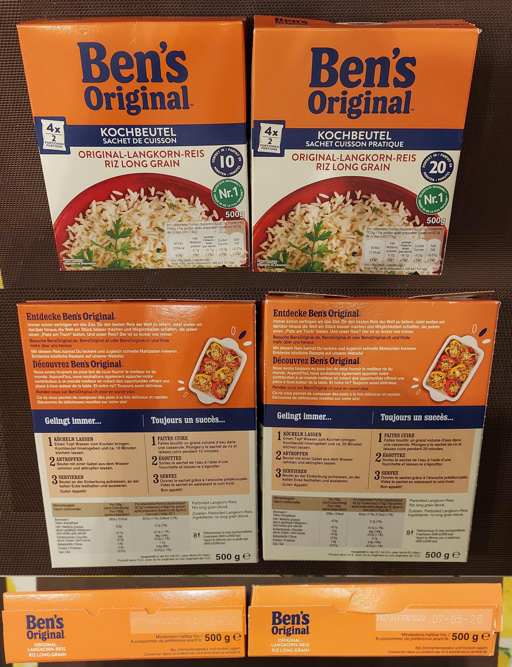 Weiß jemand warum der Uncle Bens Langkorn-Reis nur noch 10 Minuten gekocht werden muss, und dafür mehr Kalorien hat? Kennt jemand den Unterschied? Links die neue Packung, rechts die alte.