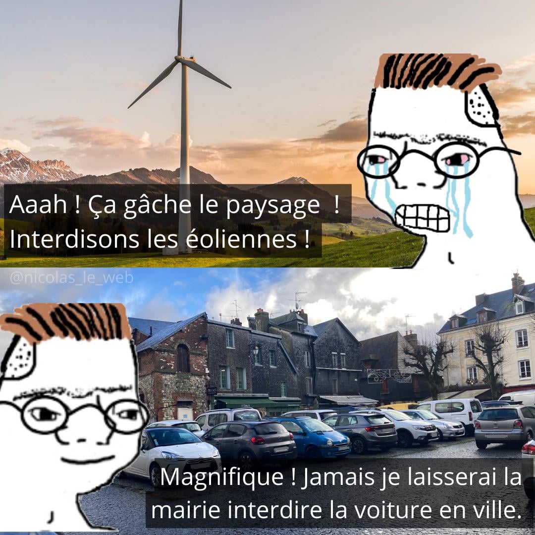 Les voitures qui prennent toute la place dans les villes et villages gâchent le paysage, change my mind by Nicolas_le_web Tags:franceMemesMemes Décentralisés 2 comments Prend mon haut vote pour avoir défendu les éoliennes qui prennent chère par des gens qui se contredisent ! Rageux etre comme : gna gna le nucléaire c’est polluants, faut mettre plus d’éoliennes ! Rageur être aussi : gna gna les éoliennes c’est bien mais j’en veux pas chez moi Fonctionne aussi avec les lignes à haute tension Leave a ReplyYou must be logged in to post a comment.