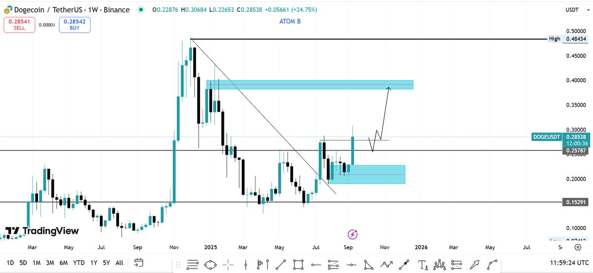 This news saw Dogecoin soaring up to above $0.274, its best recovery in months. Analysts believe that this breakout indicates that the dog-themed coin is increasingly becoming mature with institutional interest as well as its well-known community of loyalists.