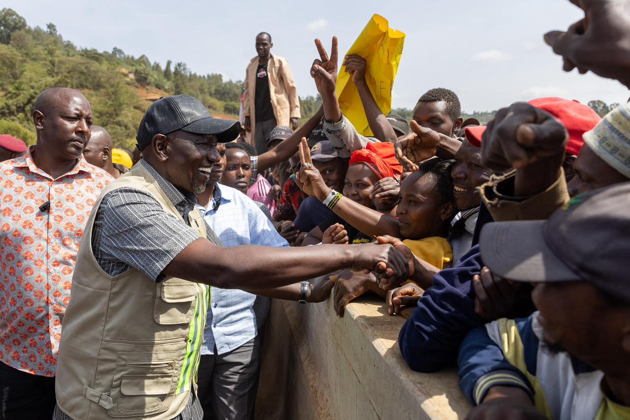 President William Ruto (third left) greets locals at the Marua Interchange in Nyeri County/PCS