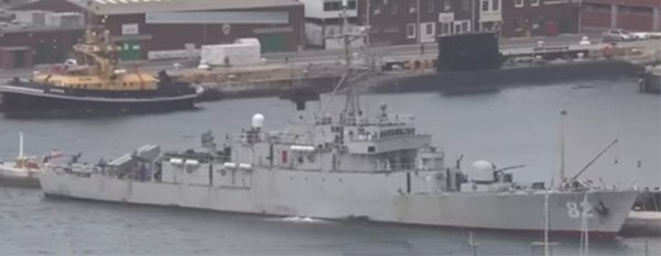 The Iranian Navy corvette IRINS Naghdi (F82) alongside, with a South African diesel-electric attack Heroine Class Type 209 submarine behind (Screengrab from Times New World)