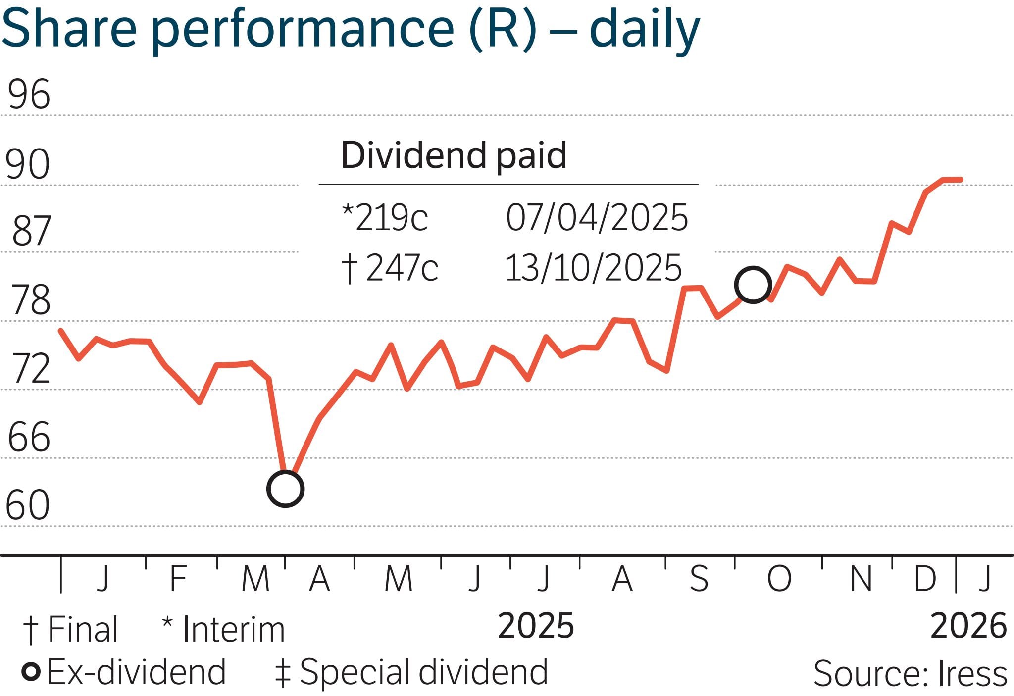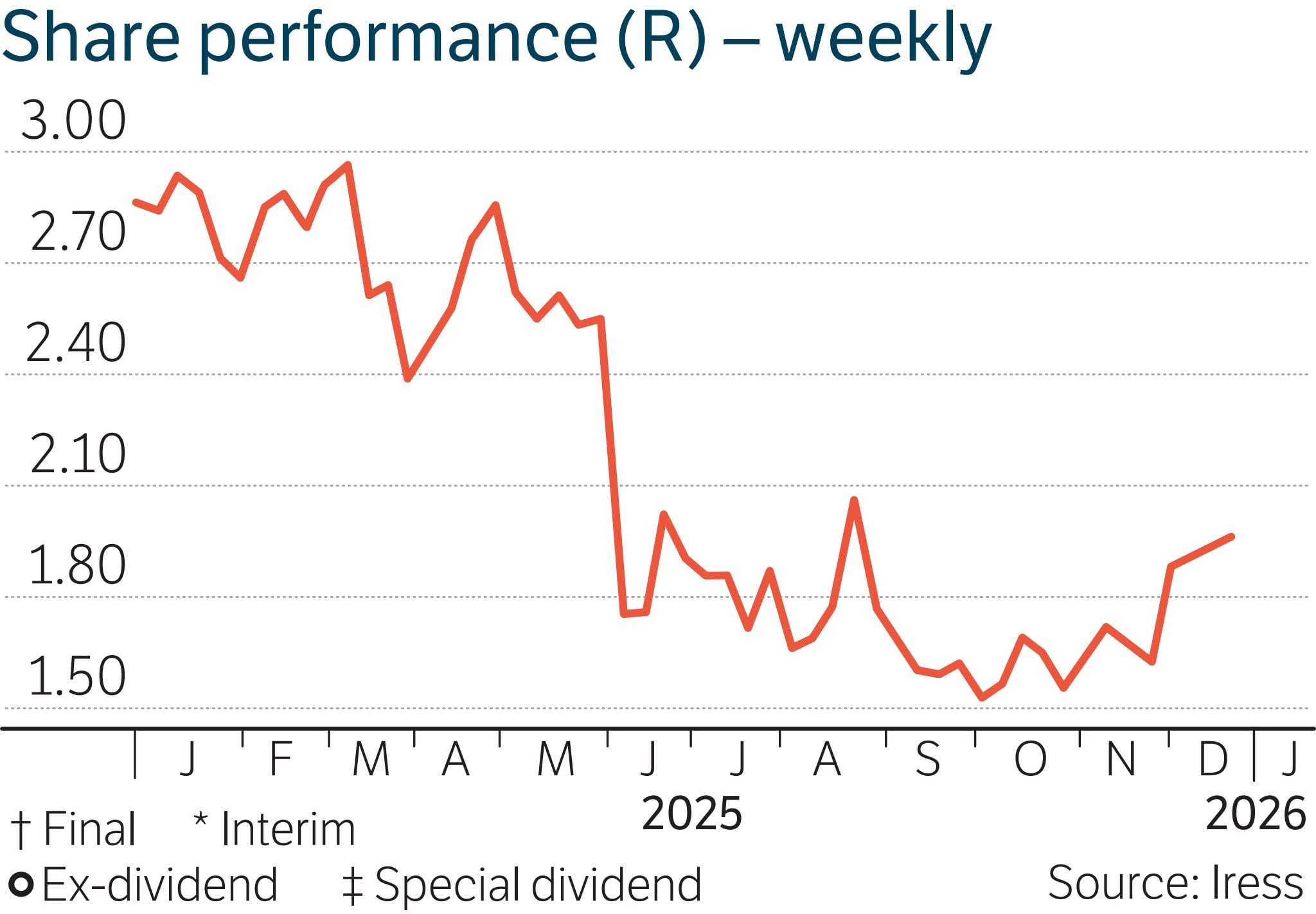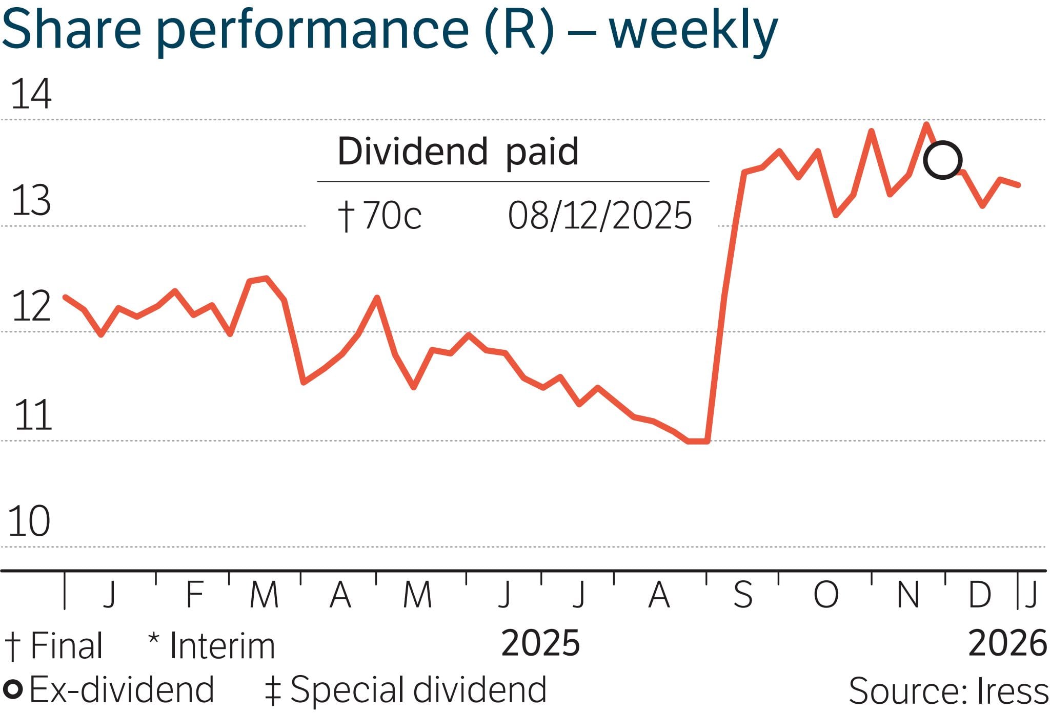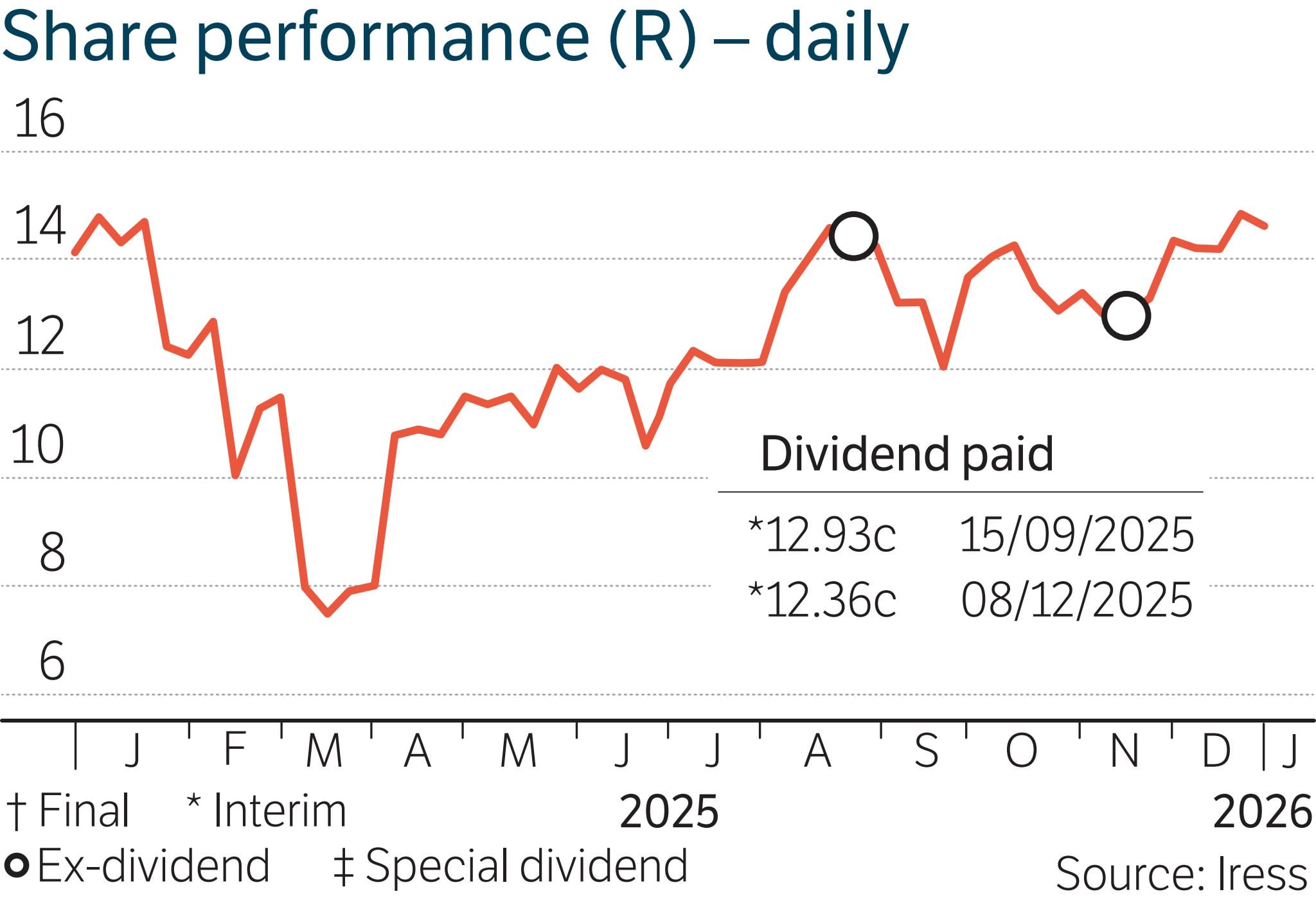 Share price: R14.60