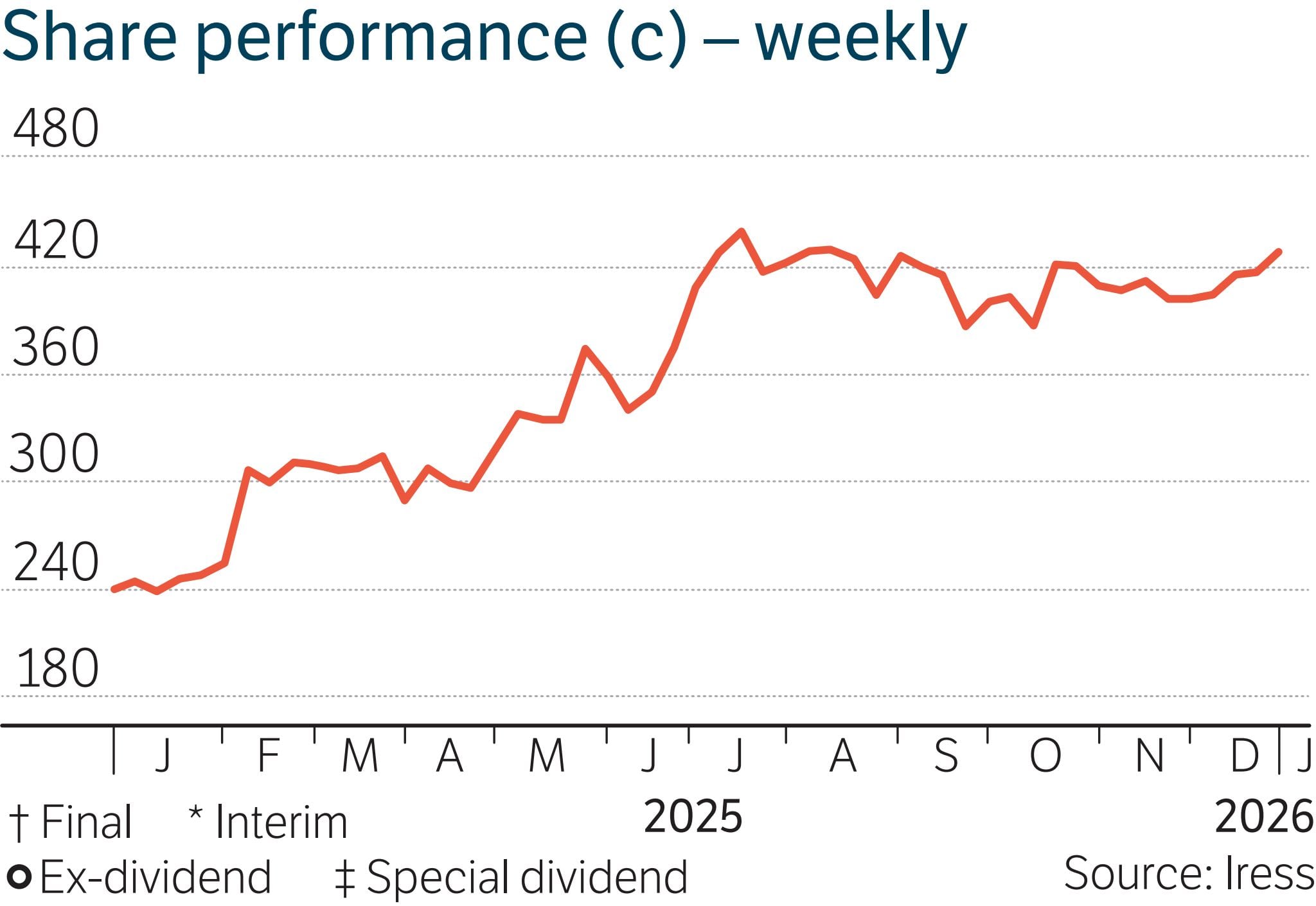 Share price: 430c