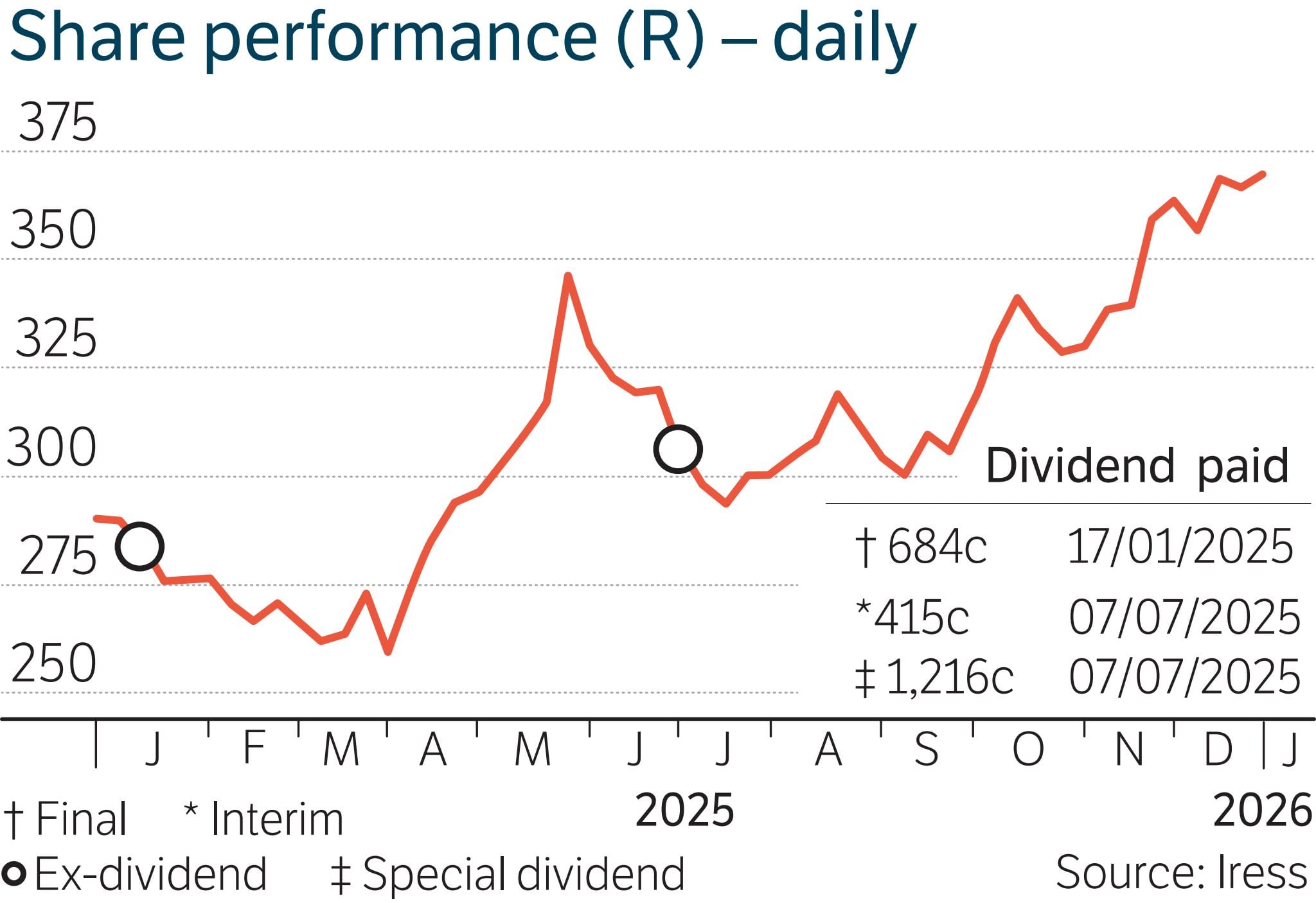 Dividend paid: Alphamin share price (R) daily (Vuyo Singiswa )