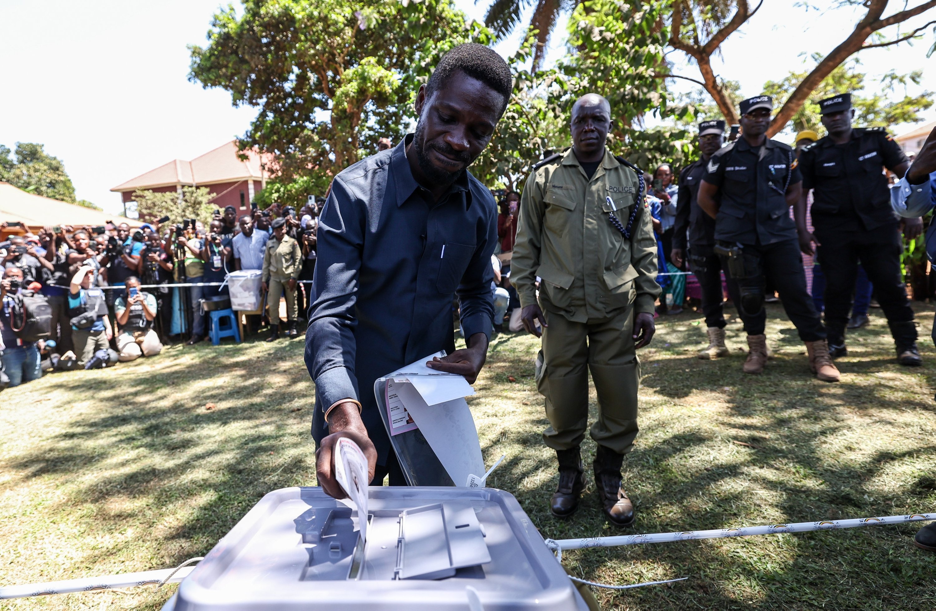 Uganda’s opposition leader Robert Kyagulanyi, popularly known as Bobi Wine, casts a ballot at the Kamwokya during the 2026 general elections, Kampala, Uganda, Jan. 15, 2026. (AFP Photo)