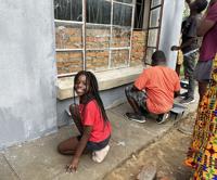 Tafadzwa Rukunda, left, and her brother, Tendai Rukunda, paint teachers’ housing in Arnoldine Mission, Zimbabwe, in December of 2023 when she was 9 years old. They are the children of Farai Rukunda, who grew up in Arnoldine Mission.