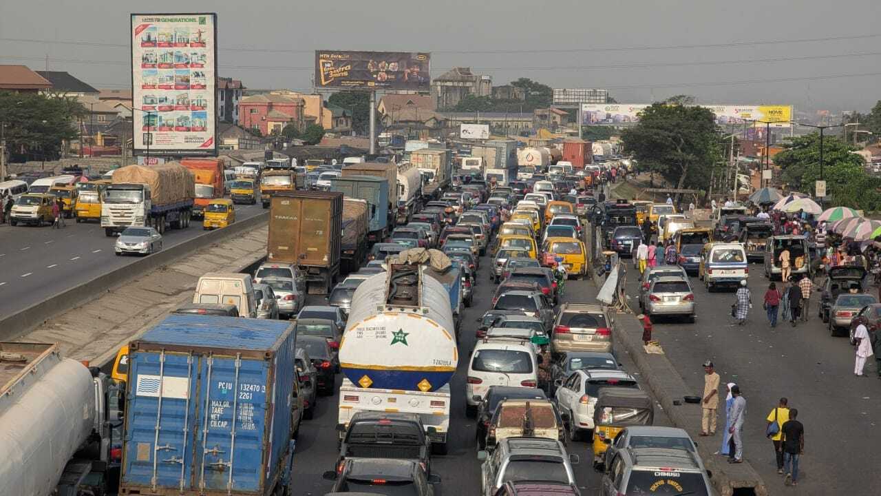 A gridlock on the Lagos-Ibadan Expressway following an accident at the Kara Bridge on January 18, 2026.