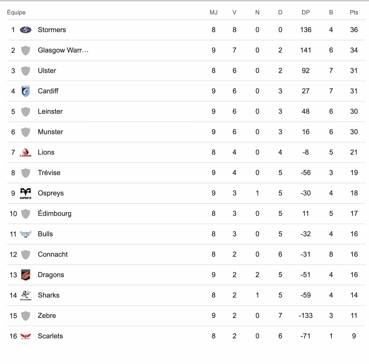 Toujours au pays de Galles, les Dragons ont confirmé leur regain de forme en dominant largement les Scarlets (28-5) à Rodney Parade. Avec trois victoires sur leurs quatre derniers matches toutes compétitions confondues, ils semblent enfin trouver de la continuité, portés par un collectif plus sûr de lui et un public retrouvé.
