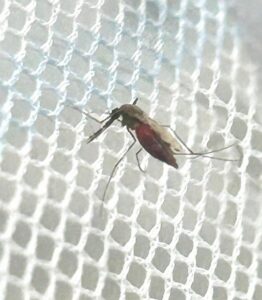 A malaria transmitting mosquito resting on insecticide-treated net because of its ability to breakdown insecticides. [C. Wondji]