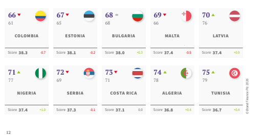 Tunisie : 75e, en progression de 4 places.