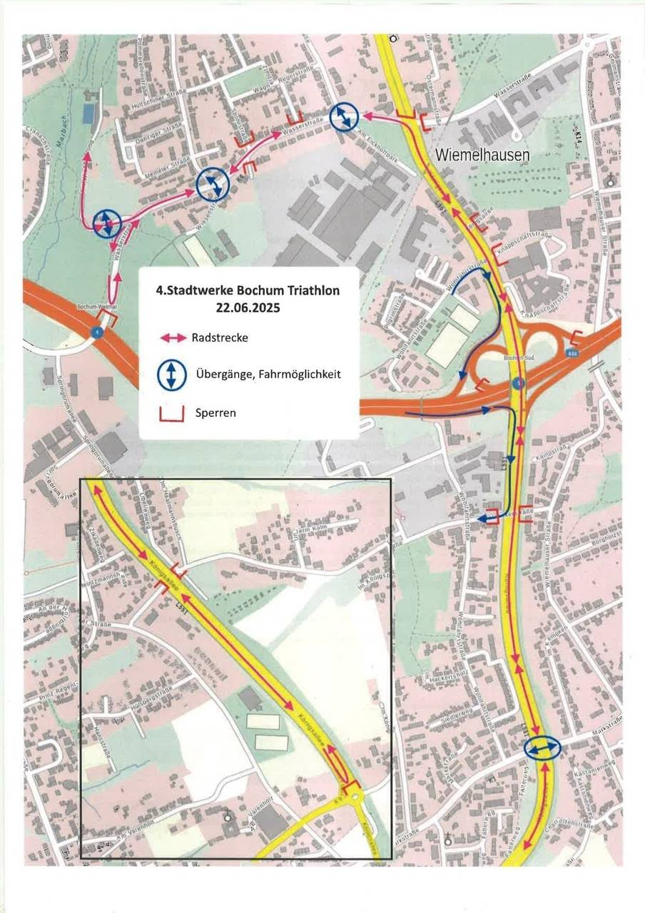 Rund 700 Teilnehmerinnen und Teilnehmer sind in diesem Jahr beim 4. Stadtwerke Bochum Triathlon dabei. Ausgetragen wird der im Wiesental. Geschwommen wird im Schwimmbad des SV Blau Weiß Bochum. Anschließend geht es auf die Radstrecke auf der Wasserstraße und der Königsallee. Der anschließende Lauf führt dann durch das Wiesental ins Ziel im Schwimmbad. In diesem Jahr finden zum ersten Mal im Rahmen der Wettkämpfe in Bochum auch die NRW-Landesmeisterschaften im Triathlon Sprint statt und auch diverse Wettkämpfe.