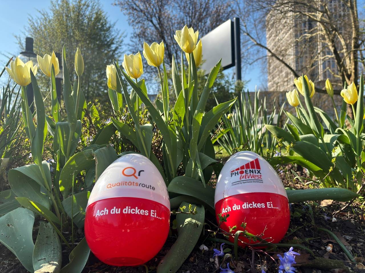 Ach du dickes Ei. Das Ostergewinnspiel mit den richtig dicken Preisen der Qualitätsroute Dortmund. Präsentiert von Radio 91.2 und der Sparkasse Dortmund.