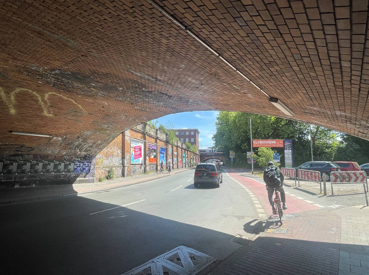 Eine von zahlreichen geplanten Umbaumaßnahmen für den Albersloher Weg: Für den Bereich Hafenstraße/Albersloher Weg/Hansaring plant die Stadt Münster eine umfassende Umgestaltung. Die beiden mehr als 130 Jahre alten Brückenbögen sollen saniert oder erneuert werden.