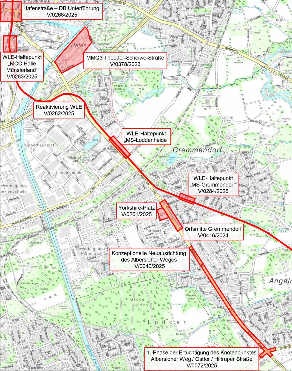 Durch das Bündel an Maßnahmen wird der Albersloher Weg als wichtige Verkehrsachse substanziell gestärkt und auch zukünftig seiner Funktion als Verbindung zwischen Münsters Innenstadt und der Region gerecht. In diesem Raum wird mit der Reaktivierung der Westfälischen Landeseisenbahn (WLE) ein weiteres und wichtiges Angebot des Umweltverbundes entstehen. Es vernetzt über neue Haltepunkte und Mobilstationen die Quartiere vom Stadthafen über das York-Quartier, die neue Mitte Gremmendorfs und die neuen Baugebiete bis in die Region.