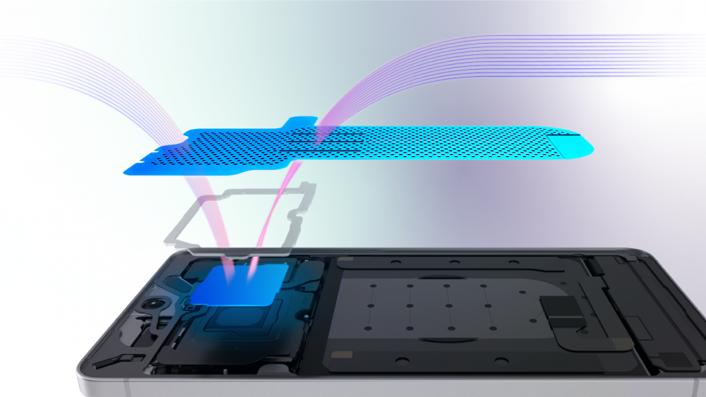 Das Samsung Galaxy S25 Edge ist das bisher dünnstes Modell der Samsung Galaxy S-Serie, aber in Punkto Leistung macht das Device keine Abstriche. Egal ob für die schnelle und effiziente Nutzung im Alltag oder für intensives Multitasking – das jüngste Modell von Samsung bietet die gleiche Power und Geschwindigkeit wie die anderen Modelle der Samsung Galaxy S25-Serie. Herzstück ist der Snapdragon® 8 Elite for Galaxy1, ein leistungsstarker Prozessor, den Qualcomm speziell mit Blick auf die AI-Verarbeitung und Performance im Alltag entwickelt hat. Aber wahre Leistung geht über den Chipsatz hinaus, besonders bei einem so schlanken Gerät. Speziell in Hinsicht auf das schlanke Profil des Samsung Galaxy S25 Edge hat Samsung ein neues Kühlsystem entwickelt. Die Vapor Chamber ist 10 % größer als beim Samsung Galaxy S25+. Um die Wärme besonders effizient abzuleiten, hat Samsung erstmals eine neue Lochstruktur eingeführt, die einen Teil des vorderen Metallrahmens überflüssig werden lässt. Damit kann die Wärme direkt vom Anwendungsprozessor zur Vapor Chamber abgeleitet werden. Ein spezielles Wärmeleitmaterial nimmt die Wärme der umliegenden Komponenten auf und leitet sie ab. So bleibt das Smartphone schnell, kühl und reaktionsfreudig. Das Samsung Galaxy S25 Edge zeigt: Leistung braucht nicht mehr Platz, sondern smartere Ingenieurskunst.