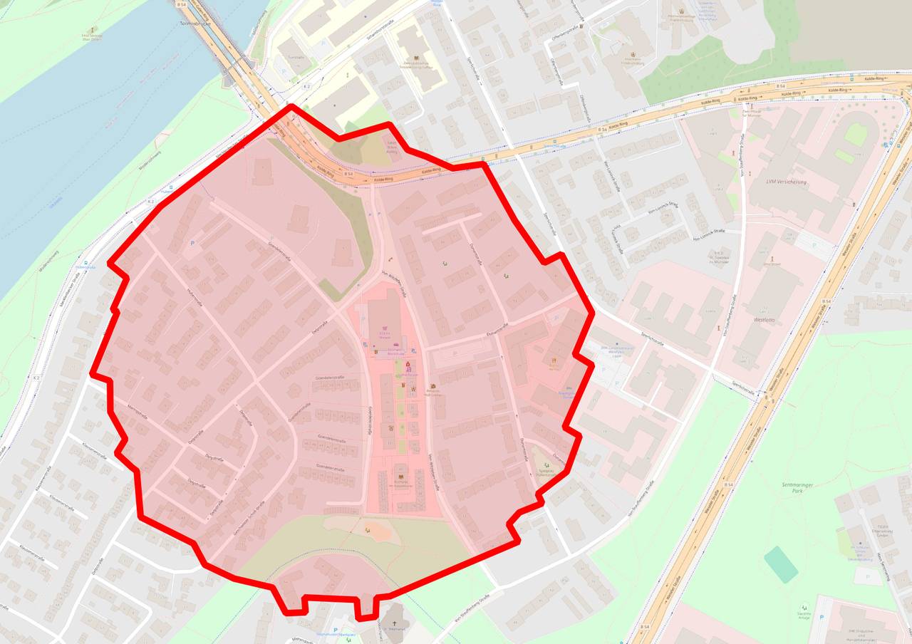 Sollte an der Goerderlerstraße ein Blindgänger gefunden werden, müsste ein Gebiet im Radius von 250 Metern gesperrt und evakuiert werden.