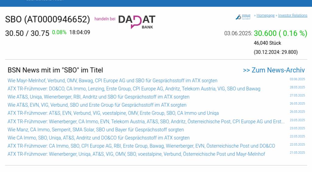 SBO am 3.6. 0,16%, Volumen 130% normaler Tage