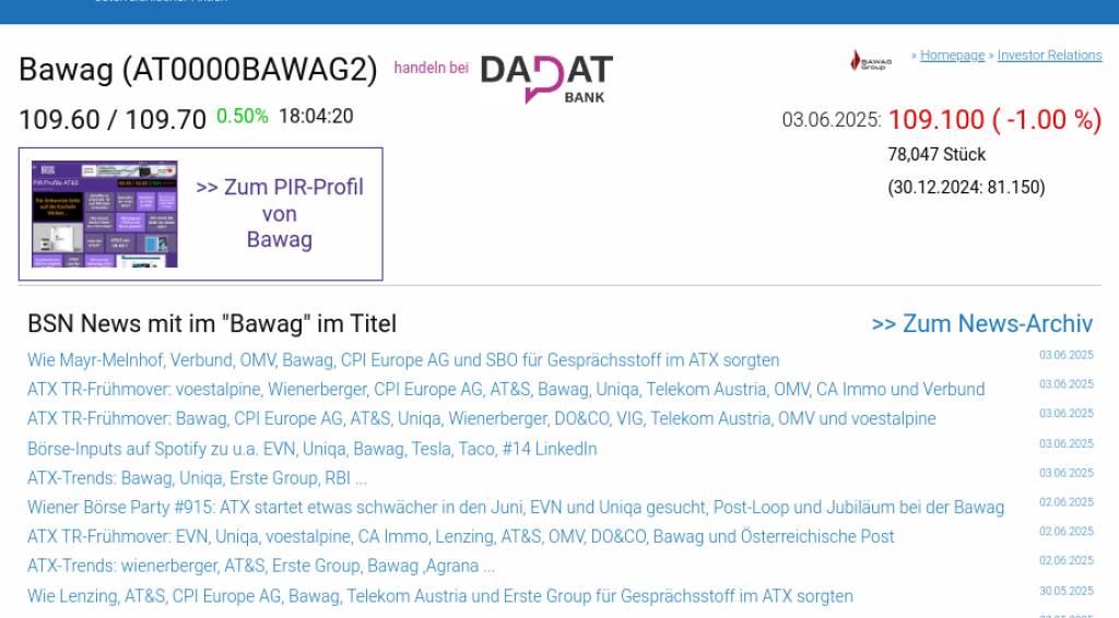 Bawag am 3.6. -1,00%, Volumen 53% normaler Tage