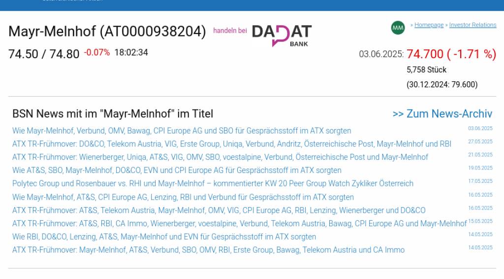 Mayr-Melnhof am 3.6. -1,71%, Volumen 63% normaler Tage