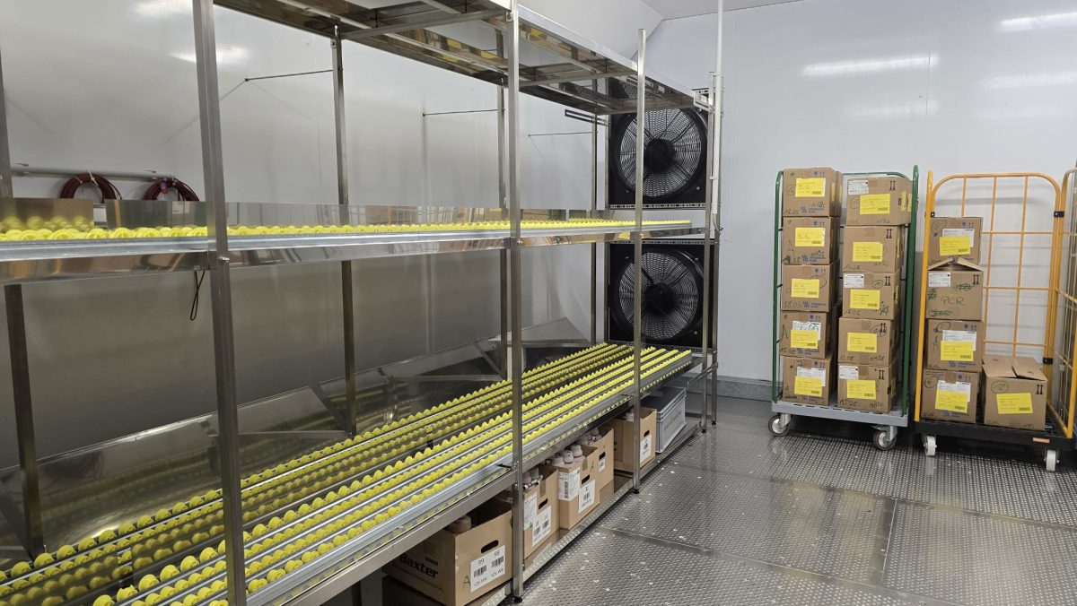 Die Kühlzelle ist das Herzstück des logistischen Teils der Einrichtung. Mit flüssigem CO₂ betrieben, herrscht hier eine Temperatur, die einem arktischen Winter gleicht. „Maximal zehn Minuten darf ein Mitarbeitender in der Zelle bleiben“, erklärt Geschäftsführer Henrik Oehme. Dicke Fellstiefel, gefütterte Jacken, Handschuhe sind Pflicht.