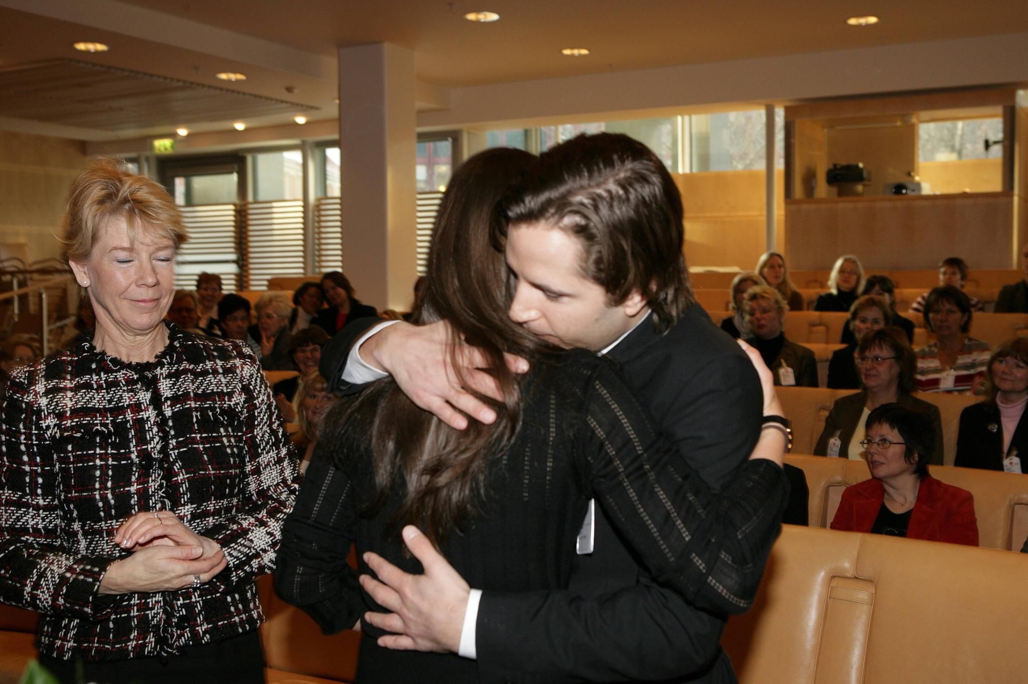 Auch nach ihrer Trennung gingen Prinzessin Victoria und Daniel Collert liebevoll in der Öffentlichkeit miteinander um, umarmten sich bei einer Preisverleihung 2005 in Stockholm.