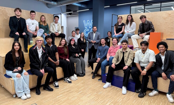 Oberbürgermeister Daniel Schranz mit den Jugendlichen im Wissenschaftscampus (WICA) NRW (Foto: Stadt Oberhausen)