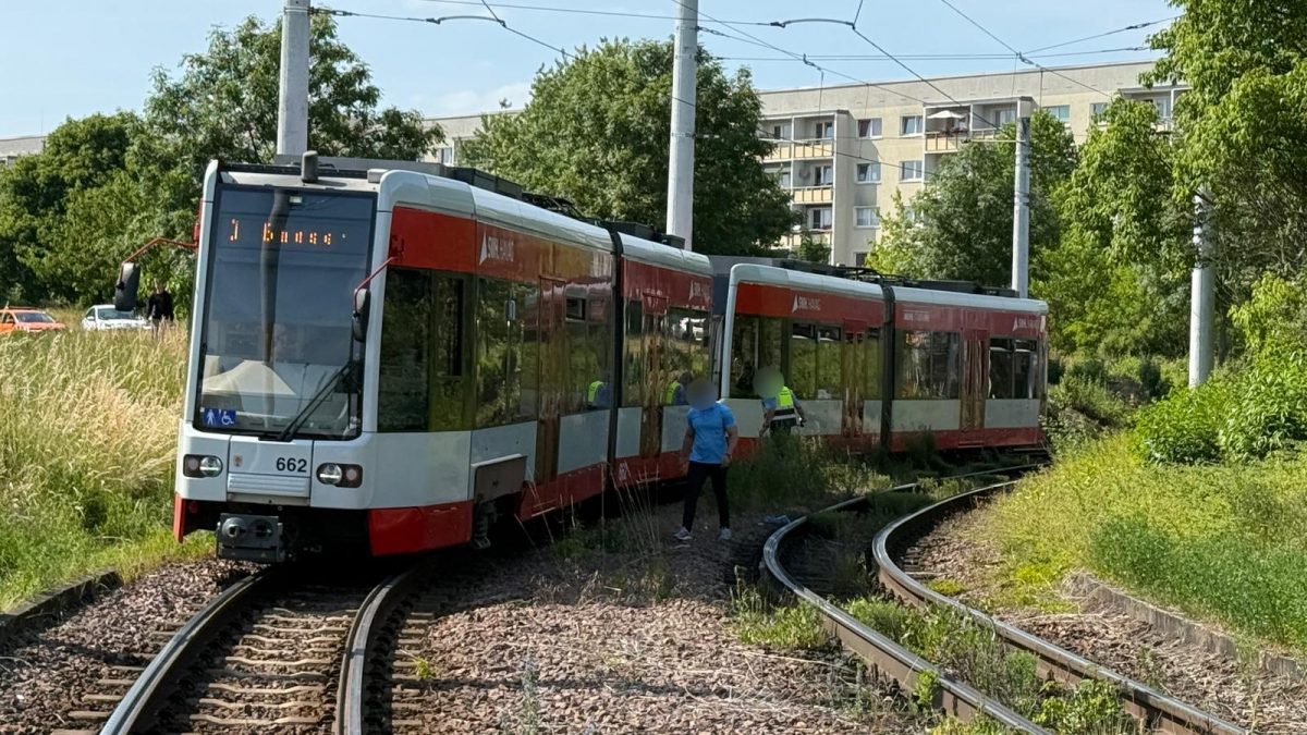 Am Anhalter Platz in Halle (Saale) ist am Dienstagnachmittag eine Straßenbahn entgleist. Mehrere Jugendliche haben zuvor Steine auf die Schienen gelegt.