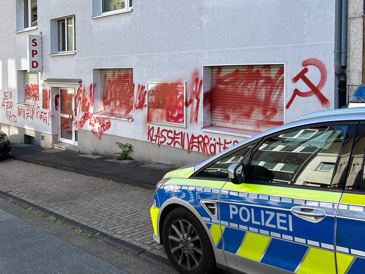 In der Nacht zum Freitag (20. Juni 2025) wurden die Parteizentralen von SPD, CDU und Grünen in Essen Ziel von Farbattacken. Mit knallroter Farbe hinterließen die Täter Parolen wie „Free all Antifas“ an der CDU-Zentrale, „Kriegstreiber“ bei den Grünen und kommunistische Symbole sowie „Klassenverräter“ an der SPD-Zentrale. Besonders die SPD-Geschäftsstelle an der Severinstraße wurde großflächig beschädigt.