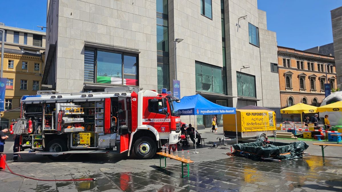 Nicht nur für das Herz, auch für die kleinen Gäste wurde viel geboten: Kinderschminken, eine große Hüpfburg, die Papenburg-Kinderbaustelle, eine Mal- und Bastelstraße – überall strahlende Gesichter. Die Freiwillige Feuerwehr Halle-Neustadt war mit einem Einsatzfahrzeug vor Ort und erklärte den Kindern Ausrüstung und Technik.