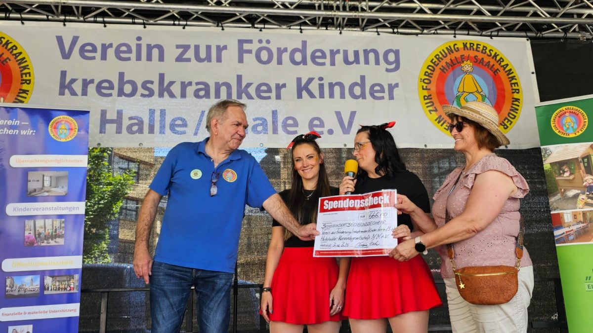 Ein besonderes Zeichen der Solidarität setzte erneut der Hettstedter Karnevalsverein „Neudorfer Narren“, der einen Spendenscheck über 666 Euro überreichte. Der Verein unterstützt das Sommerfest seit Jahren mit Auftritten und organisiert darüber hinaus jährlich eine eigene Benefizgala, um Spenden für gemeinnützige Projekte zu sammeln.