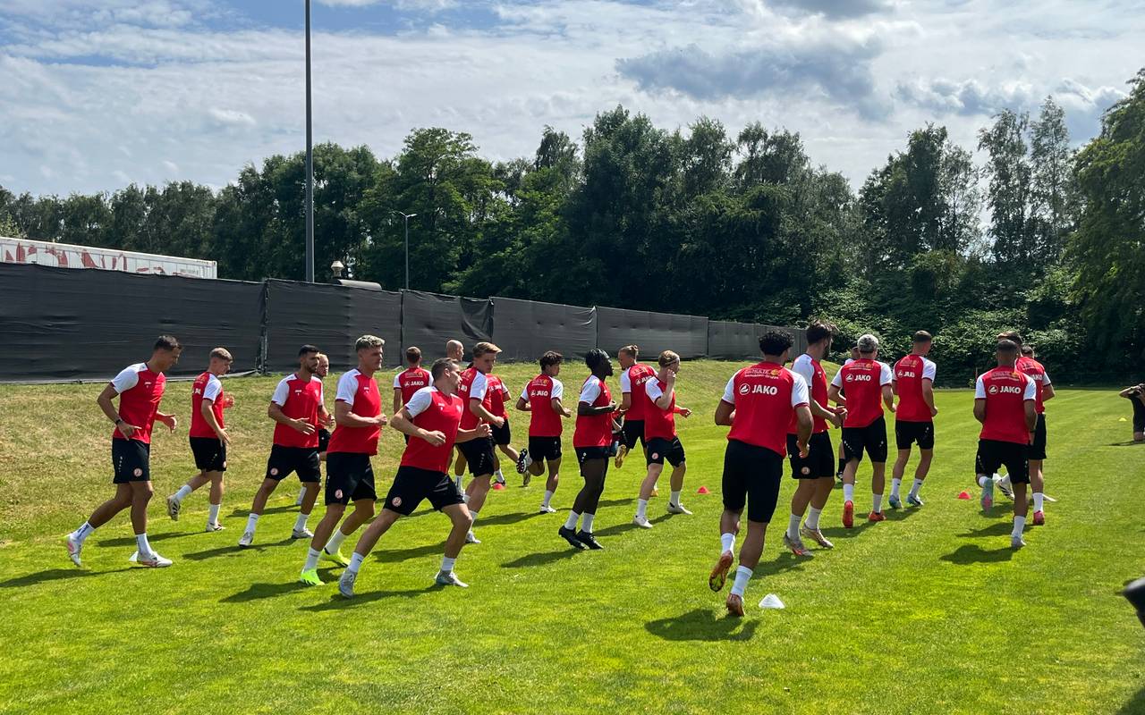 Bei 28 Grad war das Auftakttraining für die RWE-Spieler ein ziemlich anstrengendes. Mit auf dem Trainingsplatz war auch RWE-Rückkehrer und Fan-Liebling Marvin Obuz. Auch Rot-Weiss Essens Neuzugänge Marek Jansse, Malte Brüning, Luca Bazzoli, Michael Kostka und Nicolai Schulte-Kellinghaus haben direkt mittrainiert.