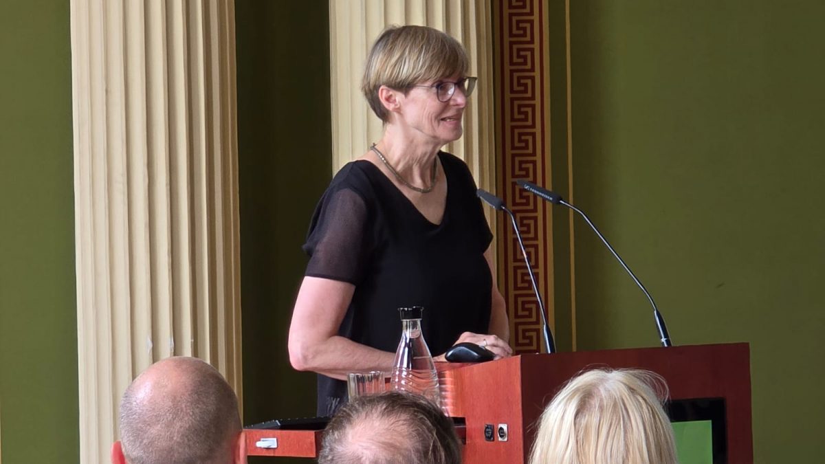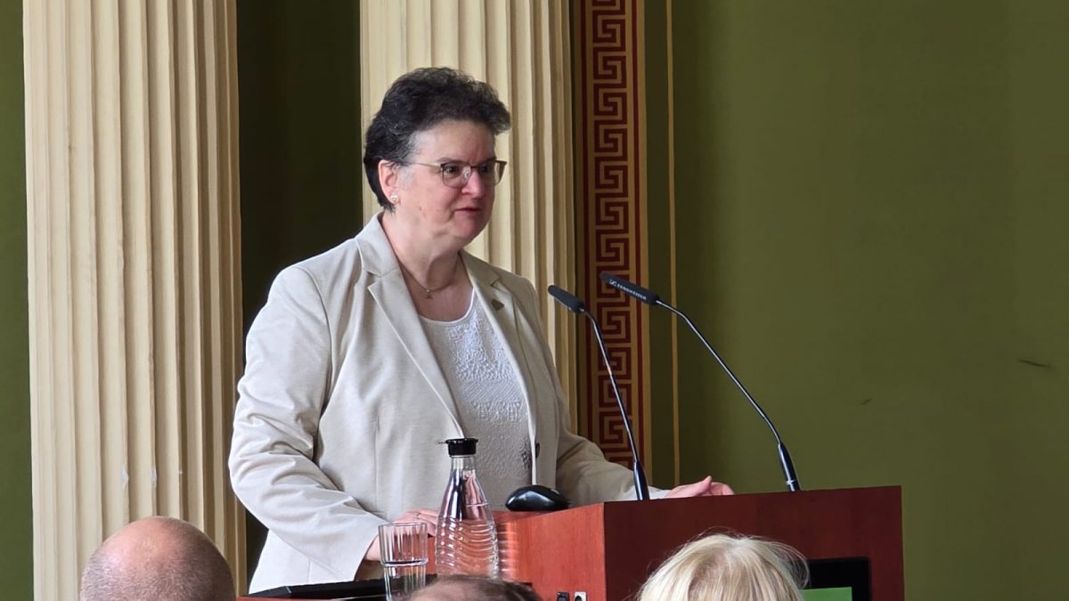 Auch Christine Engelmann, die Leiterin des Landesprüfungsamts, richtete sich in ihrer Rede an die Absolventinnen und Absolventen. Mit der Übergabe der Zeugnisse ende ein „ganz wichtiger Lebensabschnitt“, so Engelmann. „Denn in diesem Abschnitt haben Sie den Grundstein gelegt für Ihr zukünftiges Berufsleben.“