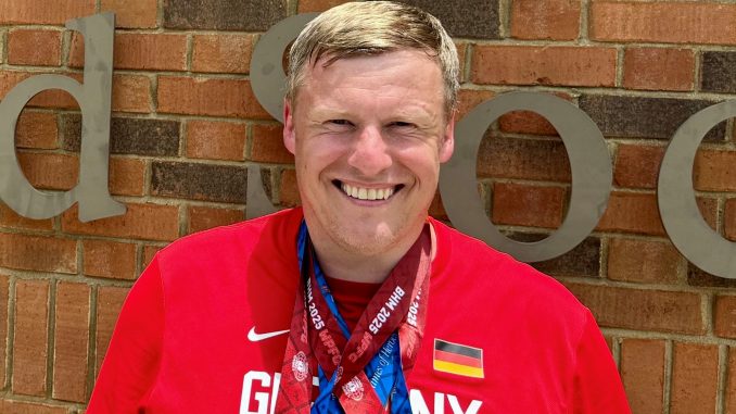 Daniel Gäbler (44), Bediensteter des Justizvollzugs Sachsen-Anhalt, hat drei Medaillen bei den World Police and Fire Games 2025 in den USA gewonnen. Foto/Quelle: MJ LSA.