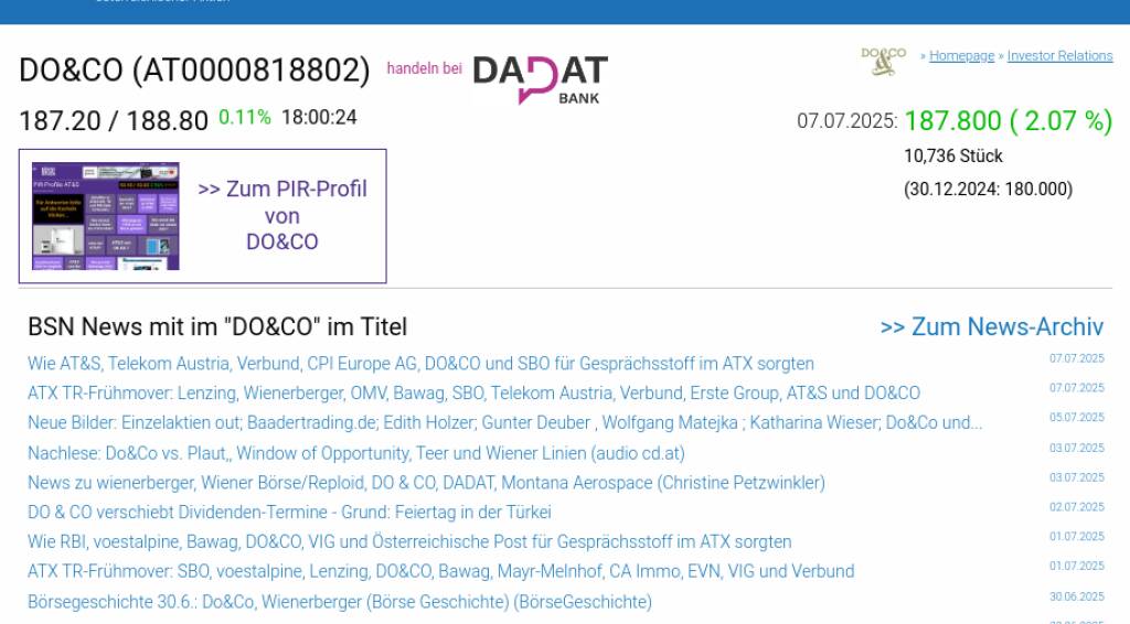 DO&CO am 7.7. 2,07%, Volumen 64% normaler Tage