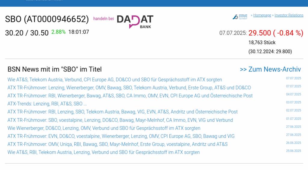 SBO am 7.7. -0,84%, Volumen 55% normaler Tage
