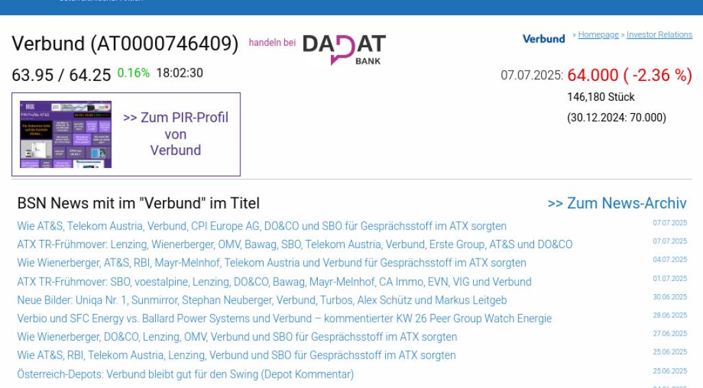 Verbund am 7.7. -2,36%, Volumen 109% normaler Tage