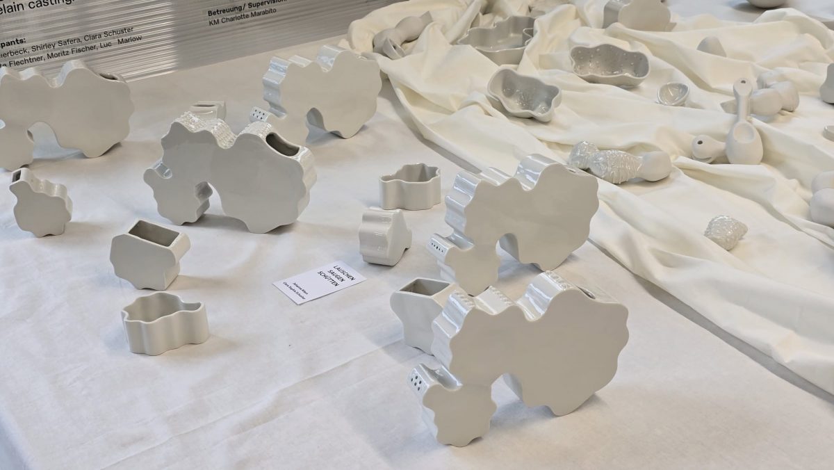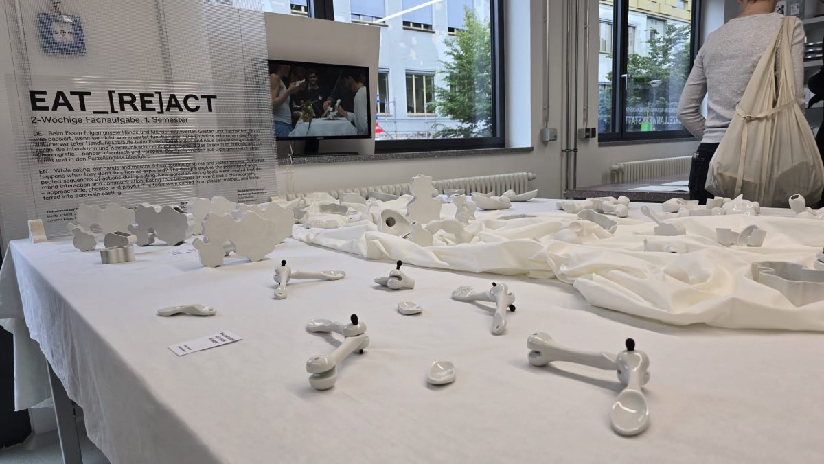 Neben technischen Innovationen überzeugte die Ausstellung auch mit ästhetischer Vielfalt: handgefertigte Möbel, extravagante Geschirrserien, aufwendiger Textildruck und überraschende Schmuckstücke sorgten für viele Aha-Momente. Immer wieder kam man ins Gespräch mit den jungen Gestalterinnen und Gestaltern, die ihre Werke erklärten, Prozesse erläuterten und Einblicke in ihre kreativen Wege gaben.